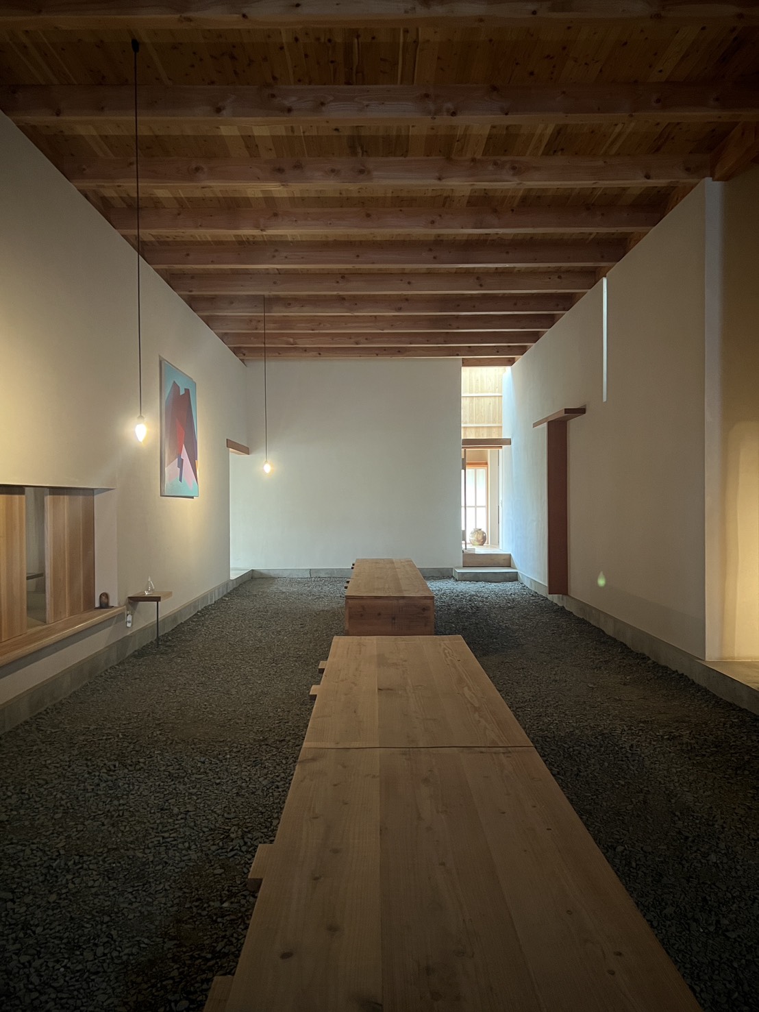 砂利を踏む音が展示室の中に響き、少しの緊張感、