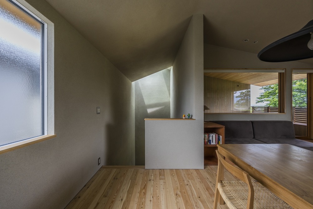 2階の窓からは北窓ならではの柔らかな順光の景色が広がる。南向きの家が日本の家づくりの主流であるなか、クライアントには北向きならではの良さとこの土地との相性を説き、素直に受け入れてくださった。